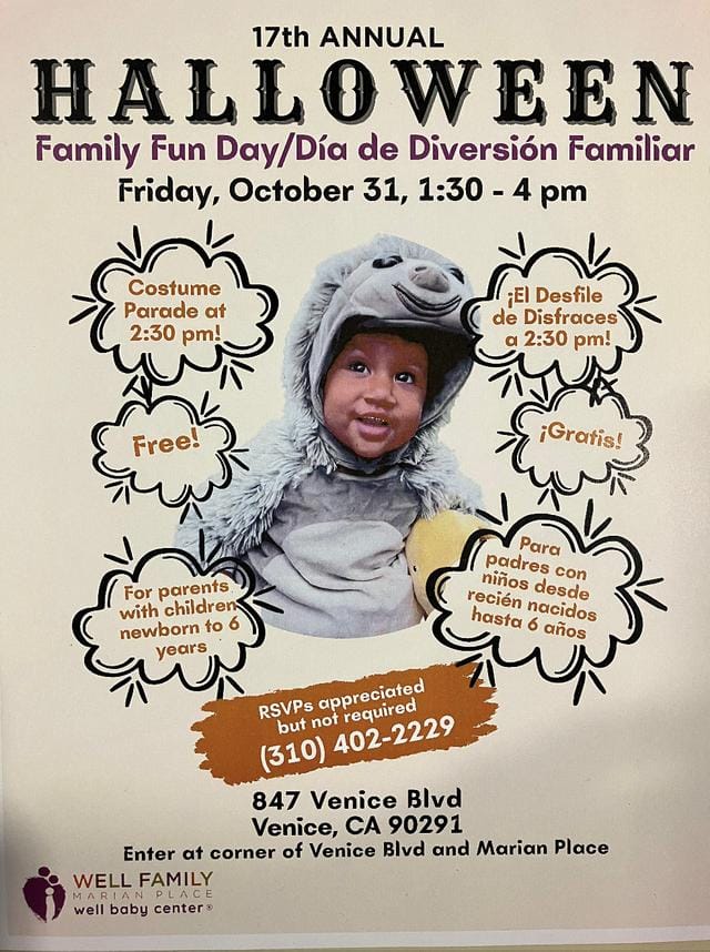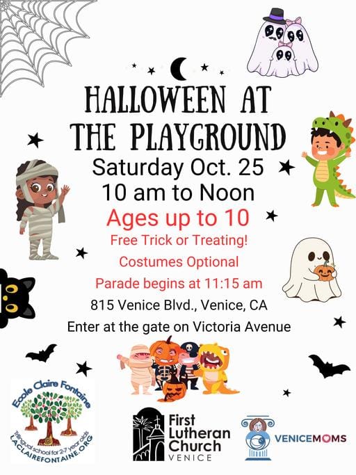 Join a fun-filled Halloween morning on Saturday, October 25, from 10 AM to Noon at 815 Venice Blvd., Venice, CA (enter at the gate on Victoria Avenue).