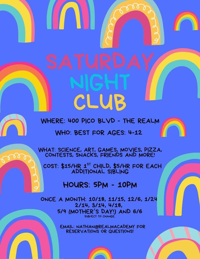 Saturday Night Club at REALM (Nov 15, 5–10pm, best for kids 4–12) Drop the kids for pizza, science, games, art, and movies while you get a parenting break.