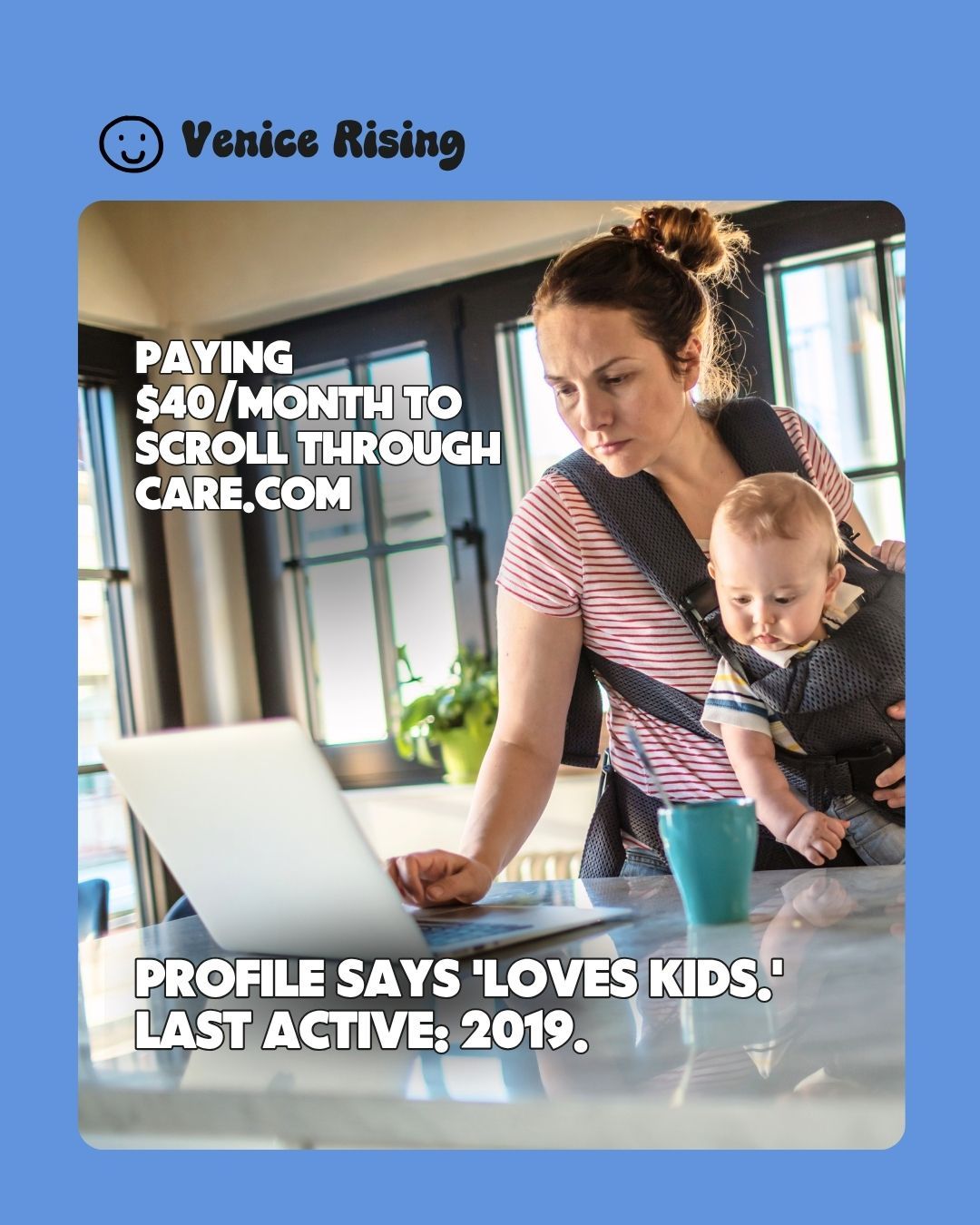 Because every parent in Venice has been in the group-chat-panic situation. Because Care.com charges $40/month and you still end up texting your neighbor anyway. Because the best sitter recommendations have always come from other parents — they've just been locked inside private group chats and whispered at school pickup.